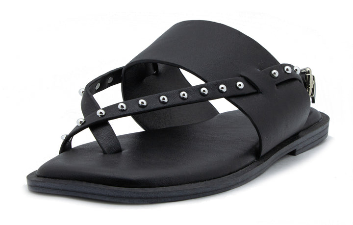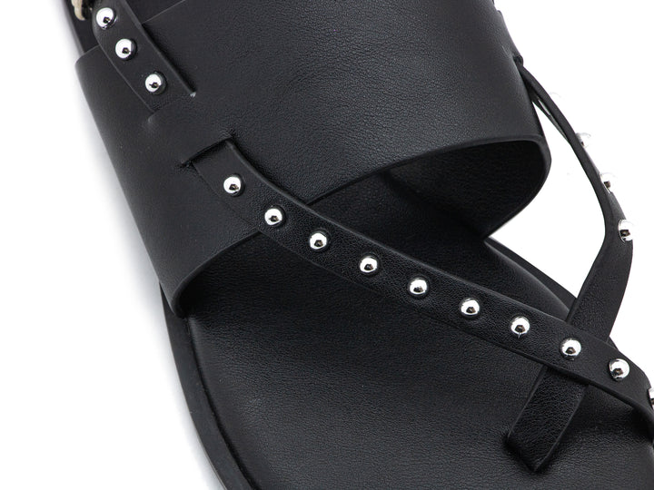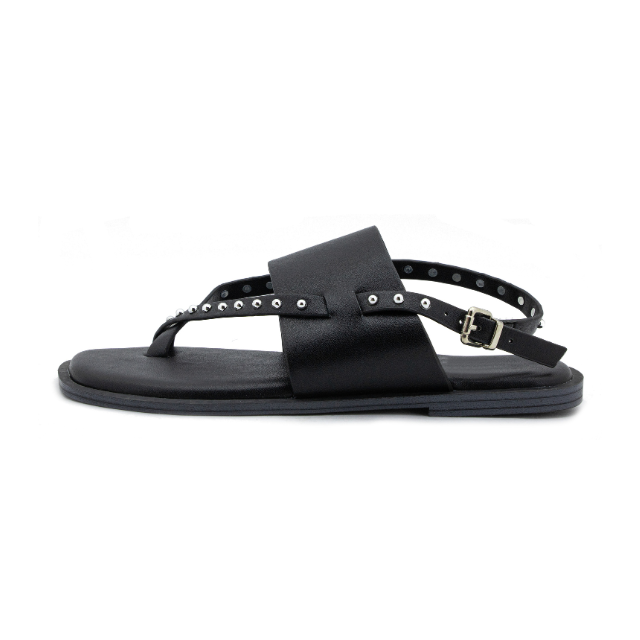Eleva tu estilo con esta sandalia plana, diseñada para brindar comodidad y sofisticación. Su diseño minimalista incluye tiras adornadas con apliques metálicos y una correa ajustable para un ajuste perfecto. Ideal para combinar con atuendos casuales o elegantes durante los días cálidos.