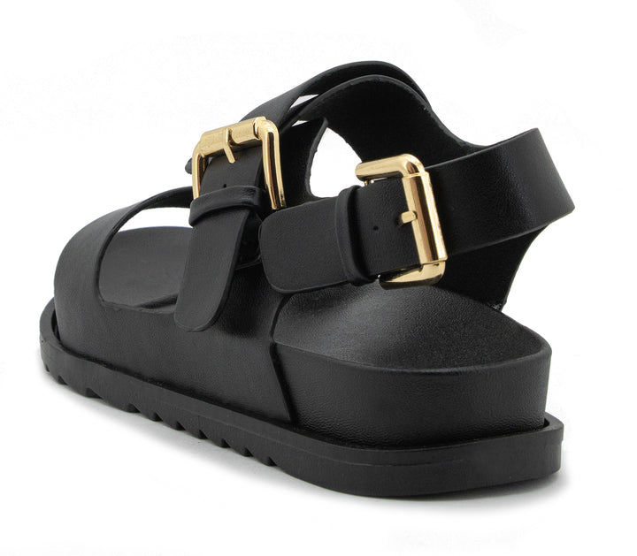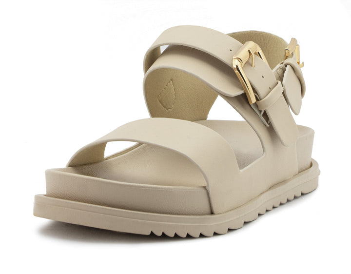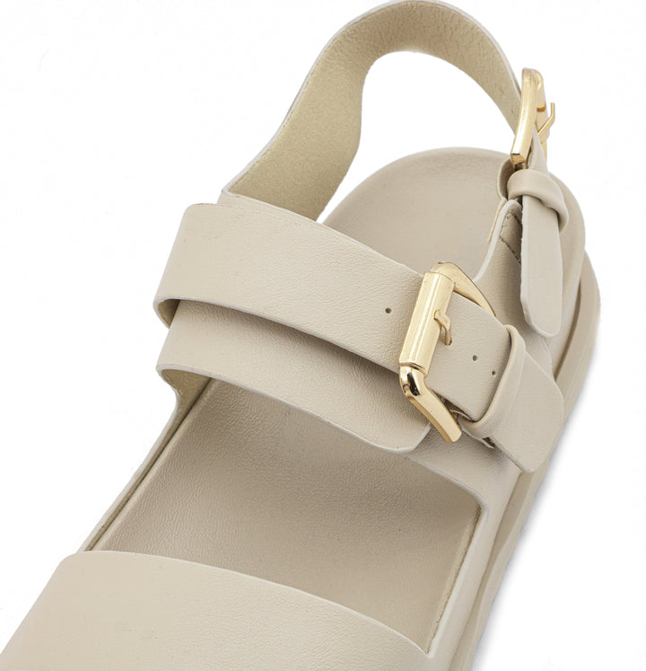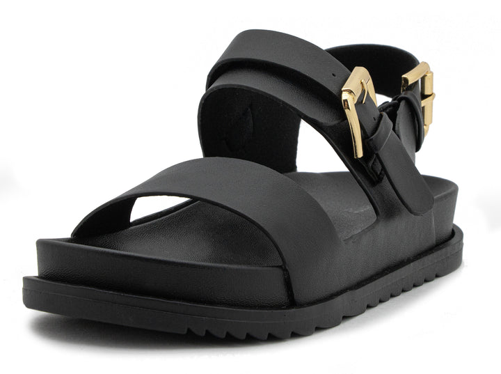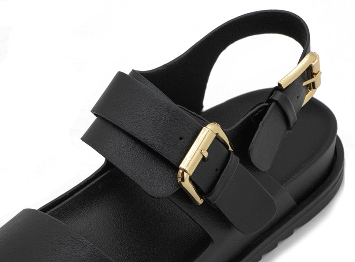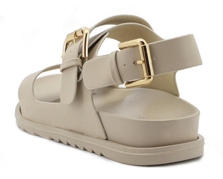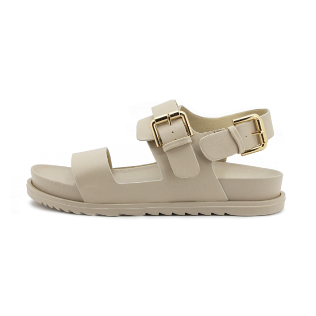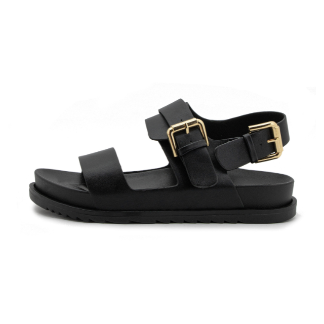 Luce fresca y elegante con esta sandalia de diseño contemporáneo, elaborada con tiras anchas y hebillas doradas que aportan un toque sofisticado. Su suela liviana y plantilla acolchada ofrecen confort durante todo el día, ideal para acompañarte en tus jornadas activas o paseos casuales. Combina fácilmente con vestidos, jeans o conjuntos veraniegos para un look moderno y versátil.