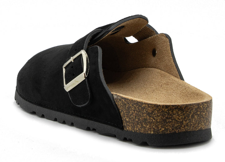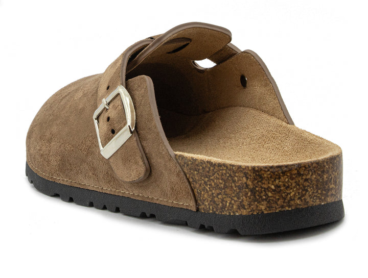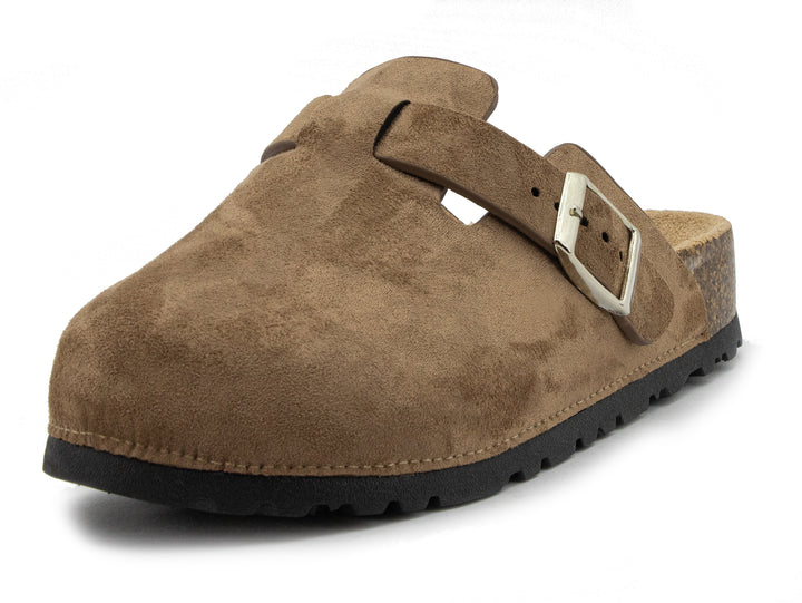 Disfruta de la máxima comodidad con este zueco tipo gamuza, ideal para un look relajado y moderno. Su diseño cerrado con hebilla metálica ajustable aporta un toque sofisticado, mientras que la plantilla acolchada y suela antideslizante garantizan confort en cada paso. Perfecto para combinar con jeans, pantalones de lino o outfits casuales de temporada.