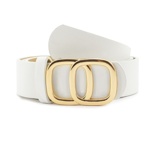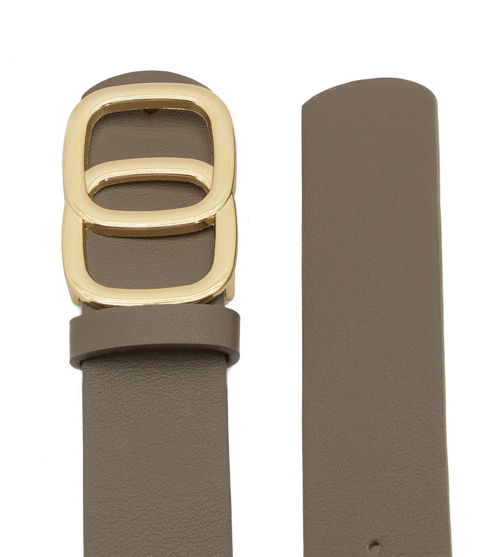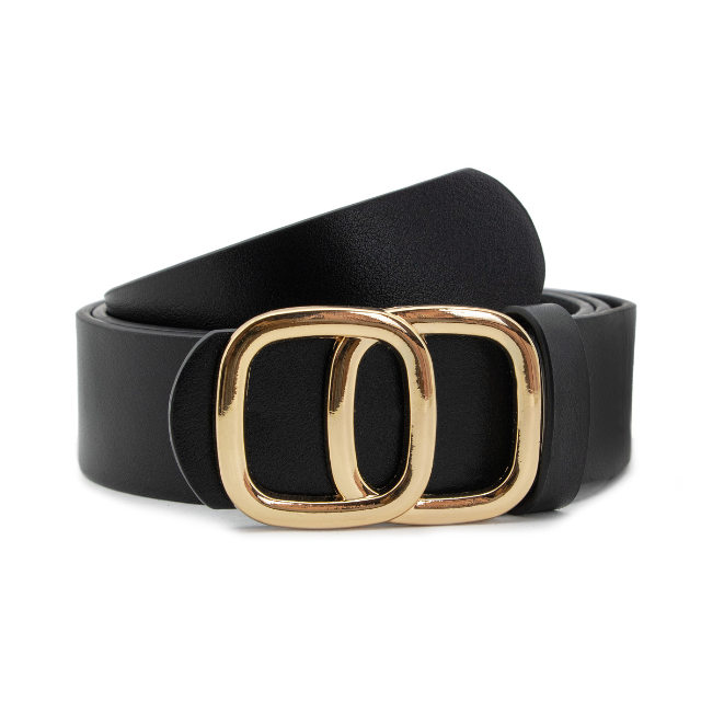 Este cinturón con hebilla de dos cuadros entrelazados aporta un toque elegante y moderno a cualquier atuendo. Su diseño sofisticado y detallado realza la cintura con estilo, ofreciendo versatilidad para combinar tanto en looks casuales como formales. Perfecto para destacar con un accesorio que equilibra funcionalidad y diseño exclusivo.