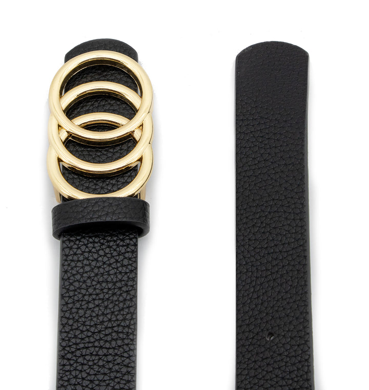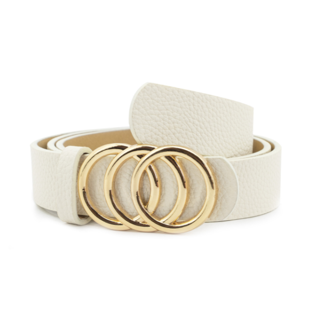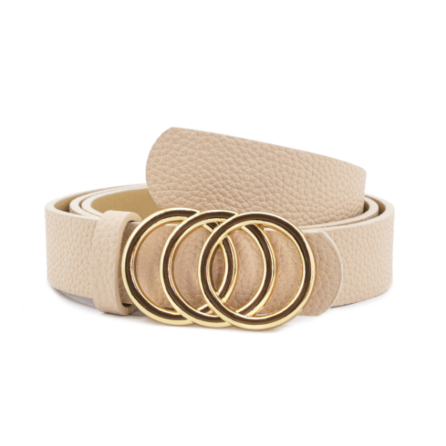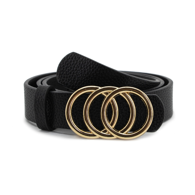 Un accesorio que combina sencillez y distinción. Este cinturón presenta una textura suave tipo grano y una llamativa hebilla triple en acabado dorado, ideal para realzar cualquier look. Perfecto para jeans, pantalones o vestidos, aporta un toque moderno y sofisticado a tu outfit diario o de ocasión.