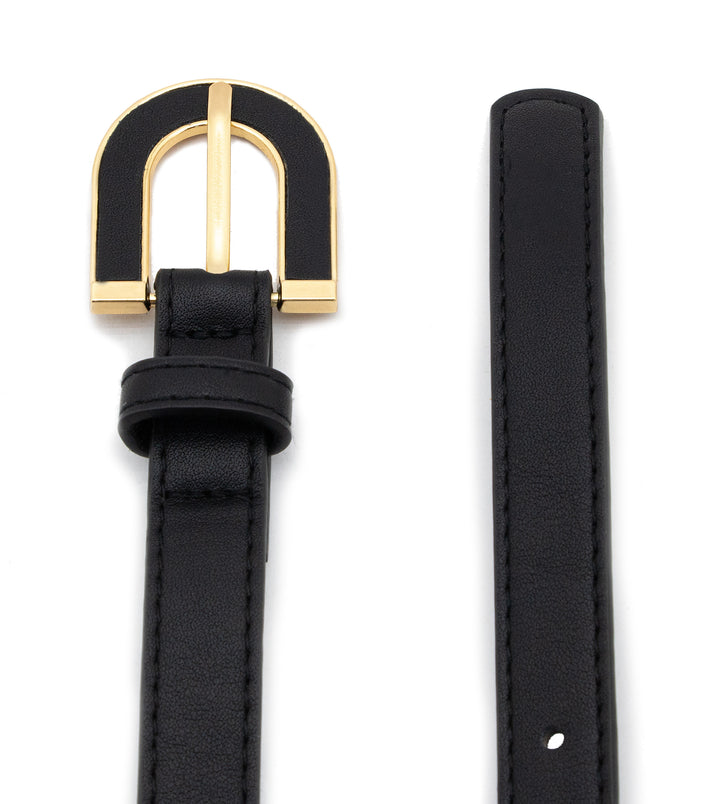 Añade un toque sofisticado a tu look con este cinturón, diseñado con una hebilla metálica dorada que aporta estilo y distinción. Ideal para combinar con pantalones, faldas o vestidos, ofreciendo un ajuste cómodo y un acabado moderno para cualquier ocasión.