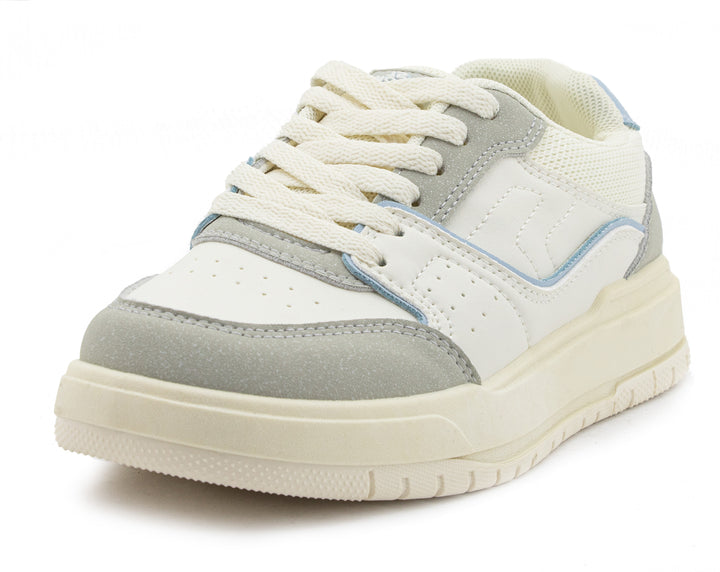 Este tenis combina diseño moderno y confort para tu día a día. Confeccionado en tonos blanco y gris con detalles en azul, ofrece un look limpio y elegante que se adapta a cualquier outfit casual. Su suela robusta y ligera brinda estabilidad y comodidad, mientras que el material transpirable asegura frescura en cada paso. Ideal para quienes buscan practicidad sin perder estilo.