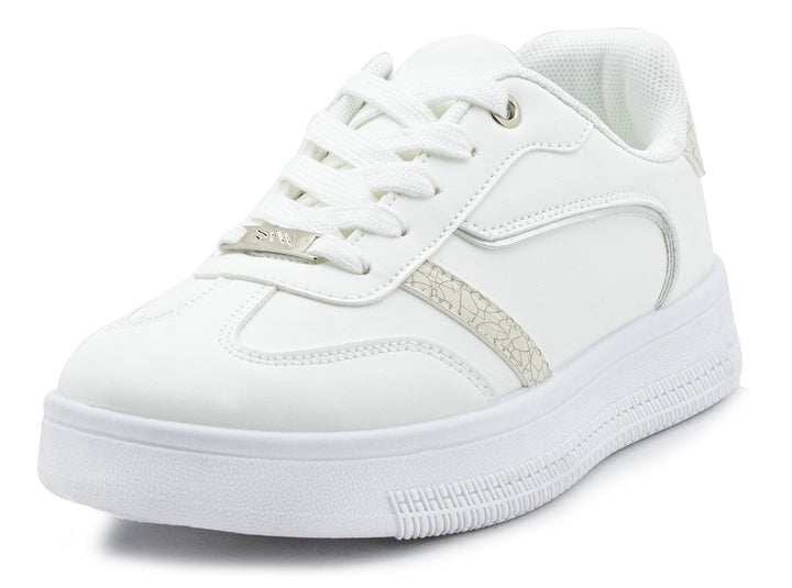 Luce un estilo limpio y versátil con estos sneakers blancos, diseñados con detalles texturizados en los laterales para un toque elegante. Su suela cómoda y ligera ofrece soporte ideal para el uso diario, mientras que su diseño atemporal combina perfectamente con cualquier outfit casual.