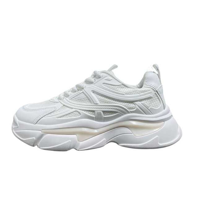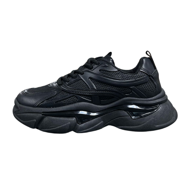 Destacan por su diseño moderno y voluminoso que combina estilo y confort. Su estructura con capas en relieve y malla transpirable brinda frescura y soporte, mientras que la suela chunky con efecto ondulado aporta un look urbano y actual.