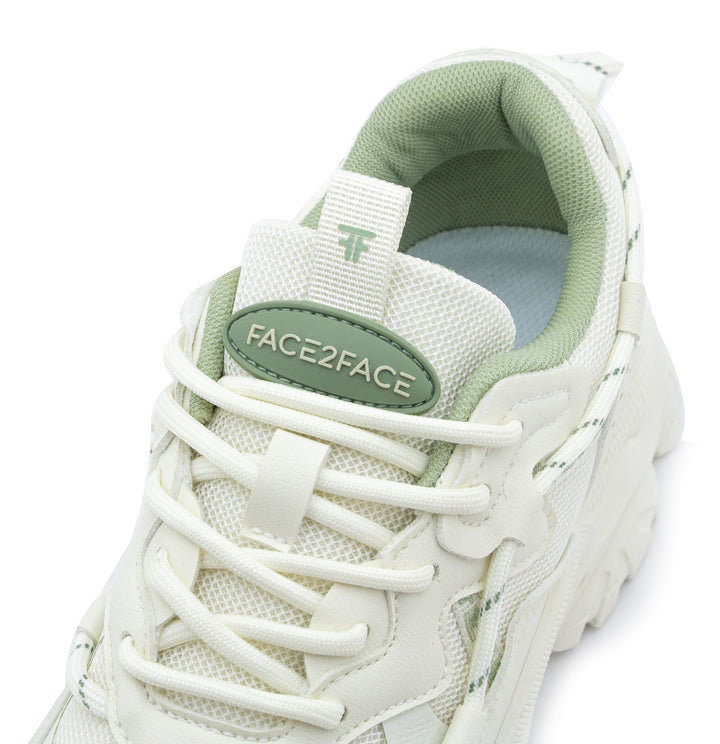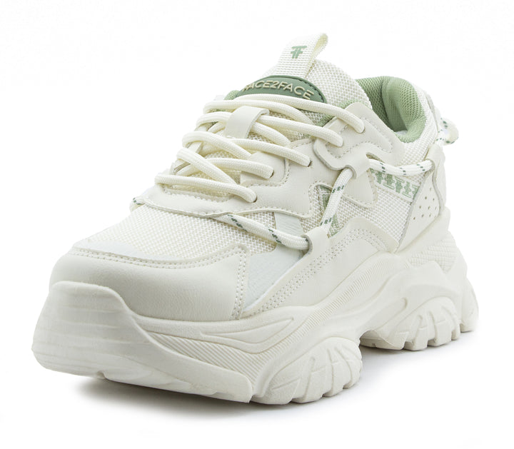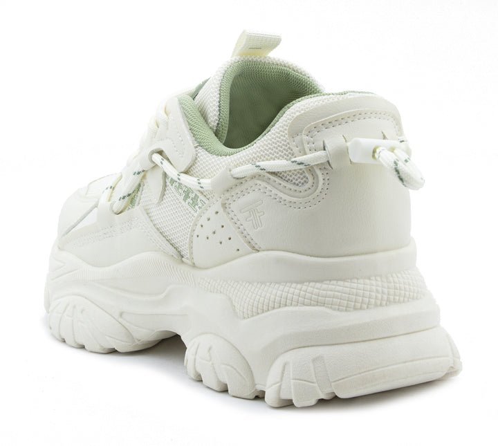 Marca tendencia con estos sneakers chunky en color blanco, realzados con detalles en verde pastel para un look fresco y moderno. Su diseño robusto ofrece máxima comodidad y soporte, ideal para outfits urbanos y deportivos. Perfectos para quienes buscan estilo, altura y confort en un solo calzado.